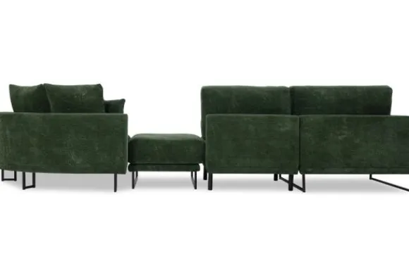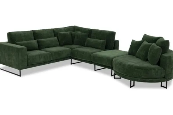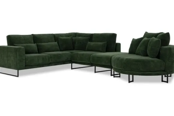 Hoekbank Dordoni II van het merk Be Inspired is verkrijgbaar in alle kleuren en in verschillende materiaalsoorten zoals ribstof, teddy en velvet. Je kunt kiezen uit diverse afmetingen. De Dordoni II bank wordt standaard uitgevoerd met alle sierkussens en lendekussens die ook op de foto te zien zijn. De rugkussens daar achter zijn lekker hoog, deze combinatie zorgt voor een goede ondersteuning van de rug. Alle rugkussens zitten los en zijn omkeerbaar, de zitkussens zitten vast met klittenband. Het unieke aan de Dordoni II is het ronde loungegedeelte. Je kunt hier lekker wegkruipen tussen alle sierkussens. Deze bank oogt ruimtelijk door de hoge metalen sledepoten.