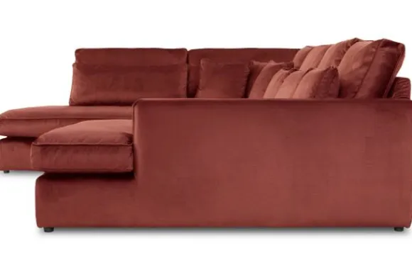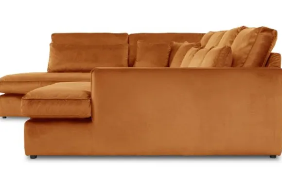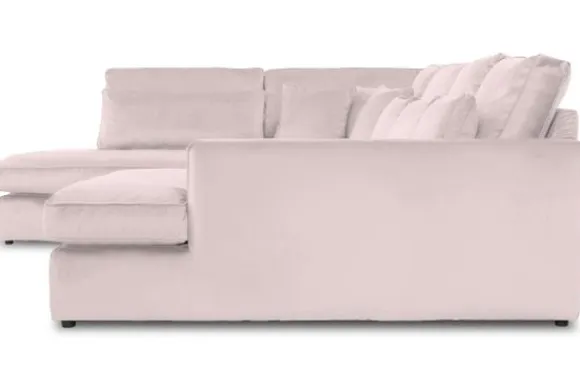 Hoekbank Romee van het merk Berg & Herk Meubelen heeft losse zit- en rugkussens en een robuuste zitting die doorloopt tot net boven de grond. De bank wordt standaard geleverd met de sier- en lendekussens die te zien zijn op de foto’s.