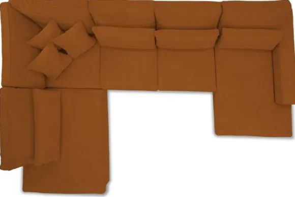 Hoekbank Romee van het merk Berg & Herk Meubelen heeft losse zit- en rugkussens en een robuuste zitting die doorloopt tot net boven de grond. De bank wordt standaard geleverd met de sier- en lendekussens die te zien zijn op de foto’s.