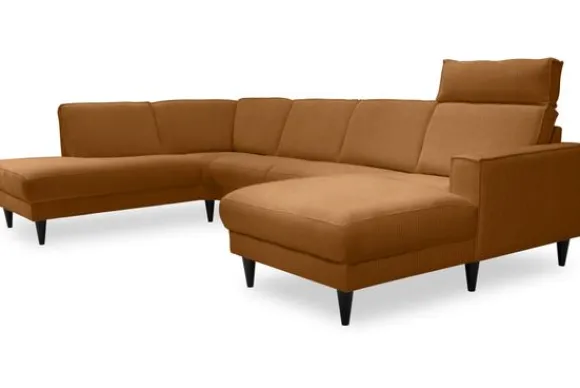 Hoekbank Sharida van het merk Danish Design is beschikbaar in alle kleuren en in diverse materiaalsoorten zoals stof, velvet en rundleder. Je kunt kiezen uit diverse afmetingen. Dit bankstel oogt ruimtelijk dankzij de smalle armleuning en de hoge metalen hoekpootjes. De rugkussens zijn afgewerkt met stoere geknepen naden.