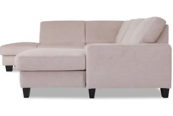 Hoekbank Bayonne van het merk Emotion Line is verkrijgbaar in alle kleuren en verschillende materiaalsoorten als stof, velvet en microleder. Daarnaast is de bank verkrijgbaar in verschillende afmetingen en opstellingen. Bankstel Bayonne heeft een stevige zit en een strakke uitstraling. Deze uitstraling is te danken aan de rechte kussens en de hoge metalen pootjes.