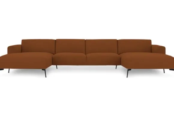 Hoekbank Romi II van het merk Gabanna is beschikbaar in alle kleuren en in verschillende materiaalsoorten zoals stof, velvet en rundleder. Je kunt kiezen uit diverse afmetingen en pootmogelijkheden. De Romi heeft een strakke uitstaling door de vaste kussens. De kussens van de Romi zijn gevuld met luxe rendementschuim, maar er kan ook voor koudschuim gekozen worden. Koudschuim wordt ook wel High Resilience genoemd. High Resilience betekent “hoge veerkracht”, koudschuim is dus een schuim met hoge veerkracht en staat ook bekend om zijn lange levensduur. Deze kussens worden ondersteund door hoogwaardige nosagvering en de bank heeft een erg sterk, houten frame. De naden zijn gevouwen en zorgen voor een leuk detail. Bankstel Romi wordt standaard uitgevoerd met poten van 17 cm hoog, maar je kunt ook kiezen voor poten van 19 cm hoog. De zithoogte van de bank is standaard 46 cm en wordt dan 48 cm.