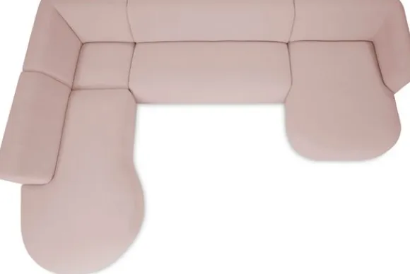 Bankstel Morgana van het merk Inmeubels is een unieke designbank met ronde vormen en een zitting die doorloopt tot net boven de grond.
