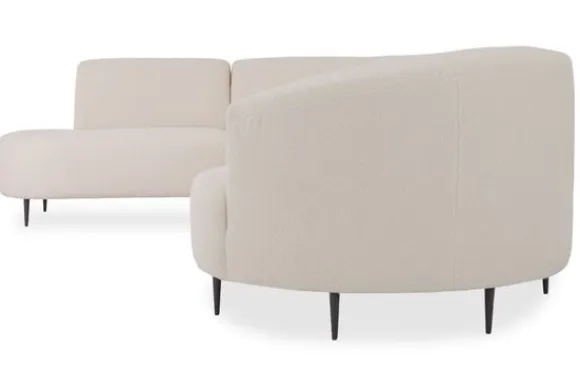 Hoekbank Payton van het merk Kenzo is een verfijnde en stijlvolle toevoeging aan elk interieur, met een uniek design dat wordt gekenmerkt door ronde, organische vormen. De rug- en armleuningen vloeien moeiteloos in elkaar over, wat zorgt voor een harmonieus en modern geheel. Een comfortabele zit wordt gegarandeerd door de hoogwaardige nosag vering, afgedekt met polyamide, en een vulling van koudschuim HR38, afgewerkt met een zachte laag dacron.