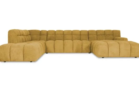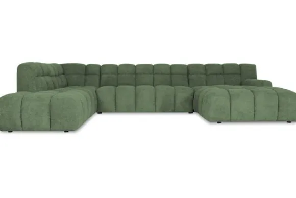 Je kunt kiezen uit verschillende materialen, waaronder stoffen als velvet en boucle. Daarnaast is de bank verkrijgbaar in uiteenlopende kleuren.