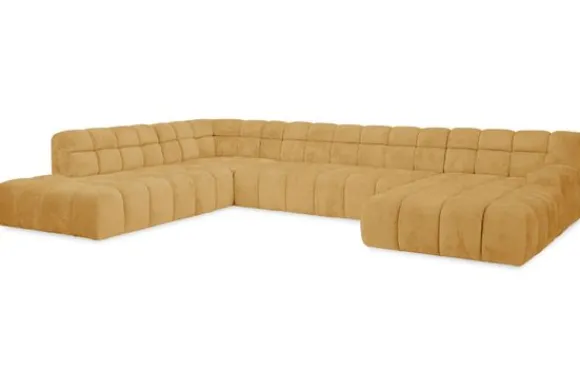 Je kunt kiezen uit verschillende materialen, waaronder stoffen als velvet en boucle. Daarnaast is de bank verkrijgbaar in uiteenlopende kleuren.