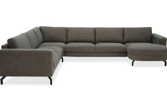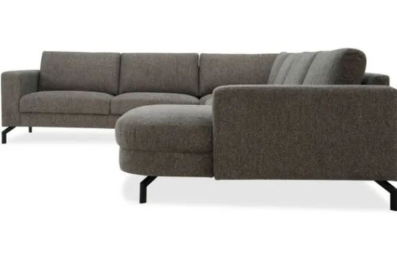Hoekbank Seattle van het merk Smit Meubelen is verkrijgbaar in alle kleuren en verschillende materiaalsoorten als stof, velvet en rundleder. Daarnaast is deze bank verkrijgbaar in verschillende afmetingen en opstellingen. De bank heeft een strakke uitstraling dankzij de hoge, metalen pootjes en de vaste zitkussens. Extra sierkussens in de hoek die zorgen voor extra comfort zijn optioneel.
