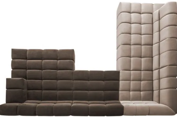 Bankstel Salvatore van het merk Studio Ralph is een luxe blikvanger met een robuuste, unieke uitstraling dankzij de vaste kussens en het blokkenpatroon.
