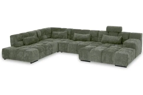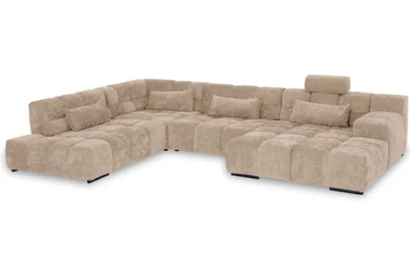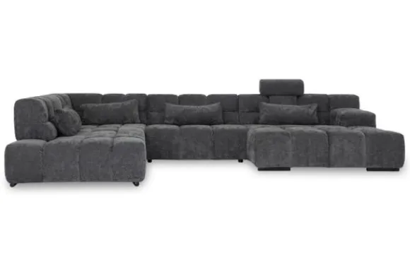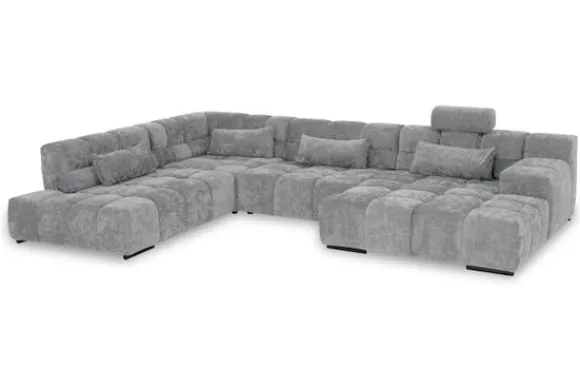 Dit bankstel is samen te stellen in vele afmetingen en verschillende opstellingen, of kies uit een van de standaard opstellingen. Ook kan je kiezen uit mat zwarte of chroom pootjes en zijn er bijpassende hoofdsteunen, sier- en lendekussens en poefjes beschikbaar. Deze worden uitgevoerd in dezelfde stof als de bank.