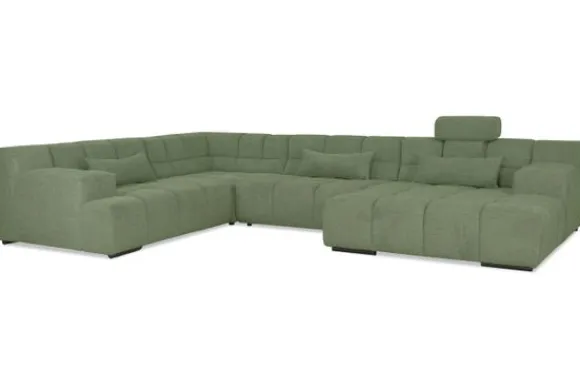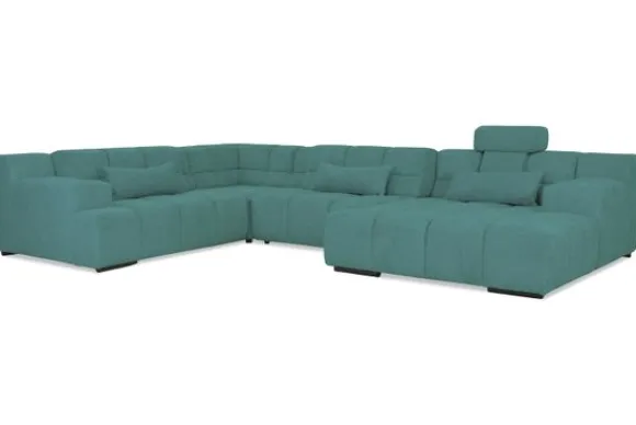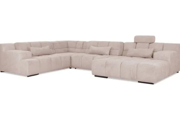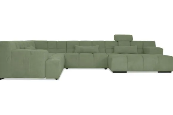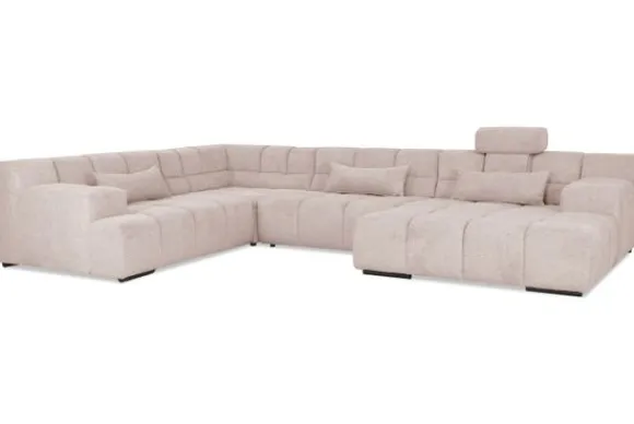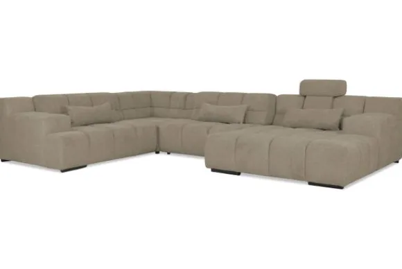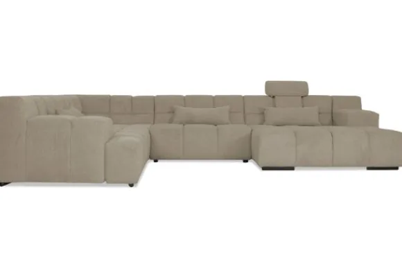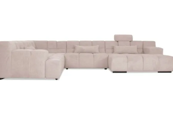 Dit bankstel is samen te stellen in vele afmetingen en verschillende opstellingen, of kies uit een van de standaard opstellingen. Ook kan je kiezen uit mat zwarte of chroom pootjes en zijn er bijpassende hoofdsteunen, sier- en lendekussens en poefjes beschikbaar. Deze worden uitgevoerd in dezelfde stof als de bank.