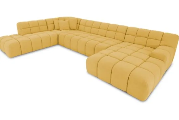 Je kunt kiezen uit verschillende materialen, waaronder stoffen als velvet en boucle. Daarnaast is de bank verkrijgbaar in uiteenlopende kleuren.