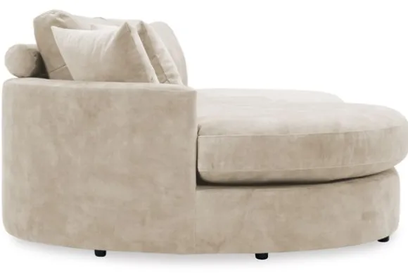 Loungebank Frida van het merk Urban Design is een speels vormgegeven loungebank met een ruime zitting die doorloopt tot net boven de grond.