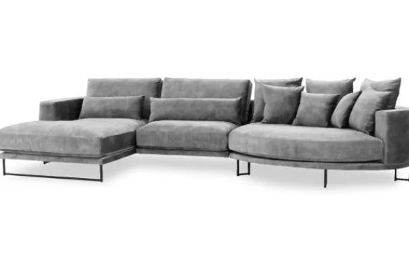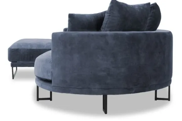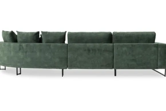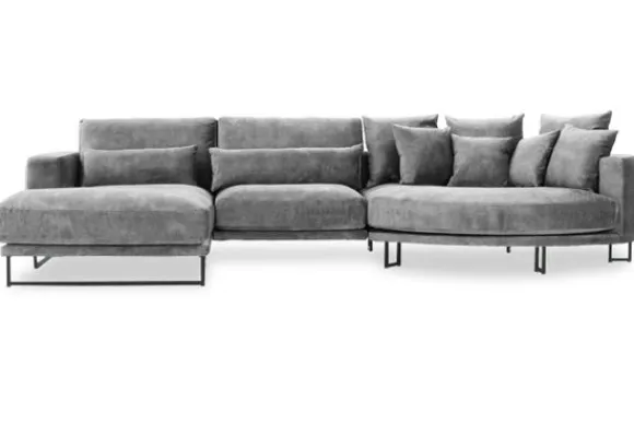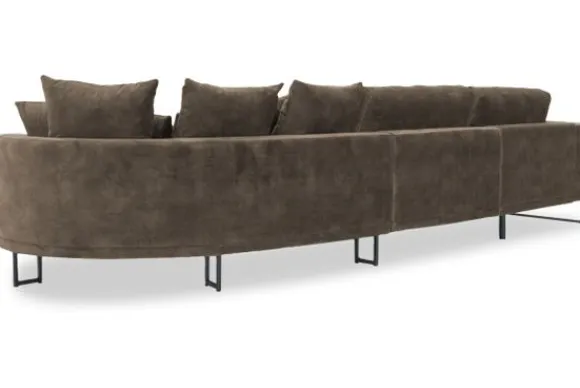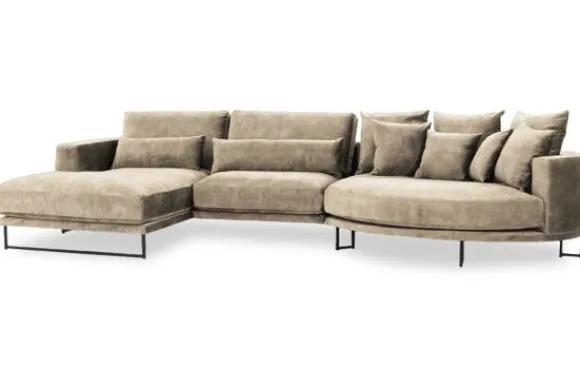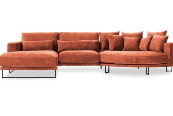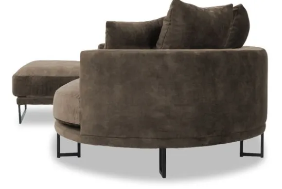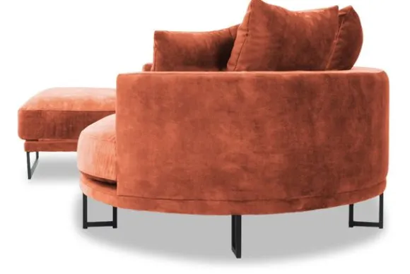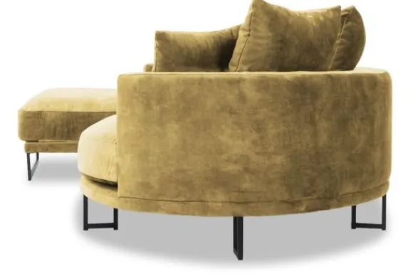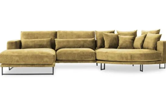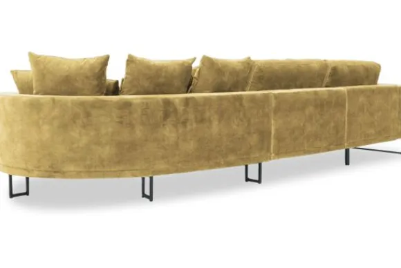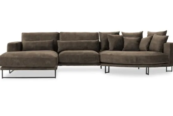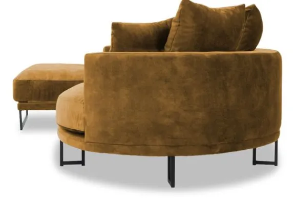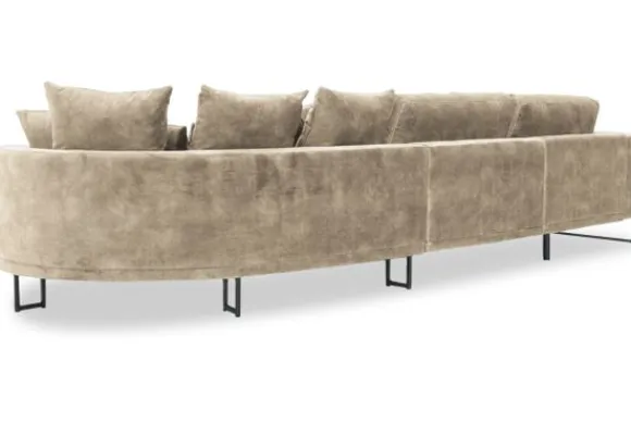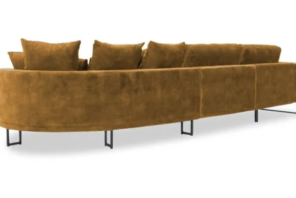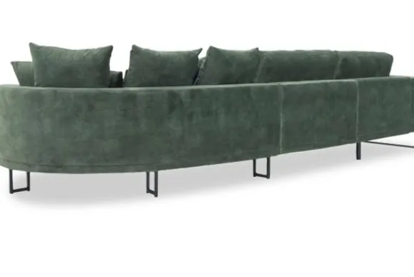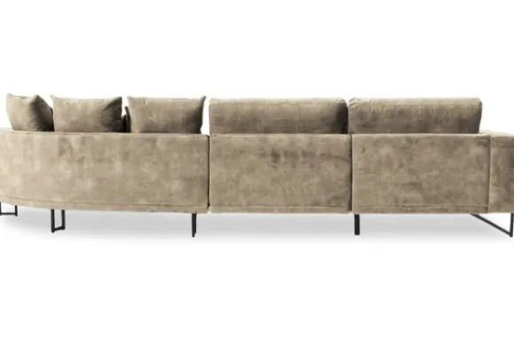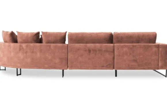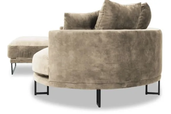 Loungebank Dordoni II van het merk Be Inspired is verkrijgbaar in alle kleuren en in materiaalsoorten zoals ribstof, teddy en velvet. De Dordoni II bank wordt standaard uitgevoerd met alle sierkussens en lendekussens die ook op de foto te zien zijn. De rugkussens daar achter zijn lekker hoog, deze combinatie zorgt voor een goede ondersteuning van de rug. Alle rugkussens zitten los en zijn omkeerbaar, de zitkussens zitten vast met klittenband. Het unieke aan de Dordoni is het ronde loungegedeelte. Je kunt hier lekker wegkruipen tussen alle sierkussens. Deze bank oogt ruimtelijk door de hoge metalen sledepoten.