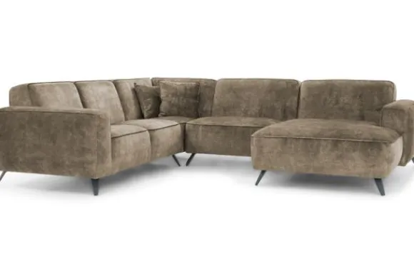 Hoekbank Galeria van het merk Design Italia is verkrijgbaar alle kleuren en diverse materiaalsoorten zoals stof, rundleder en kunstleder. De Galeria bank heeft een hoge metalen poot, waardoor het luchtiger oogt in jouw woonkamer en je er makkelijk uit op kunt staan. De bank heeft een stevige zit door de koudschuimvulling, daarnaast kan je goed wegkruipen op de diepere zitting.