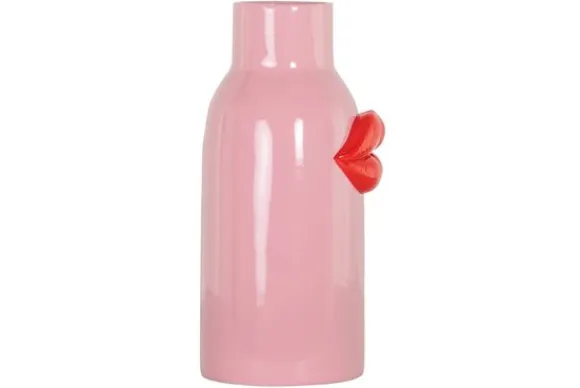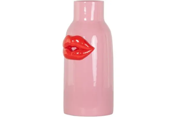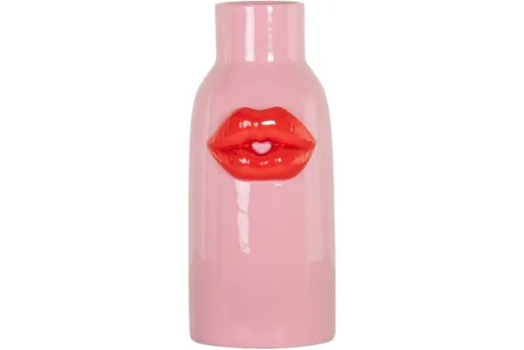 Vaas Blythe 213461 van het merk Richmond Interiors is een speels en opvallend decorstuk met een knipoog naar pop-art. De roze vaas is versierd met rode lippen in reliëf en trekt direct de aandacht.