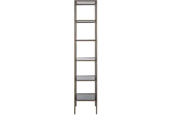 Met zijn zes glazen legplanken biedt vakkenkast Sheridon volop ruimte voor decoratie en opberging. De stevige constructie van metaal en glas maakt de kast geschikt voor dagelijks gebruik.