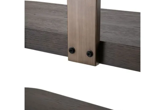 De planken van MDF met eikenhout zijn aan de achterzijde van het metalen frame bevestigd, waardoor de kast een open en luchtig karakter krijgt. Hierdoor is het geen vakkenkast met gescheiden compartimenten, maar een kast waar je decoraties, boeken of planten vrij kunt uitstallen.
