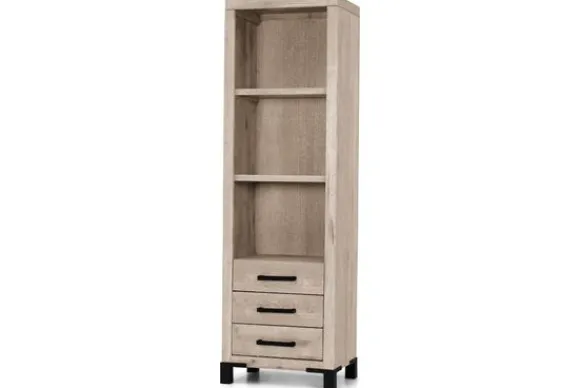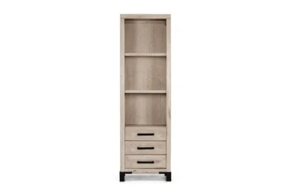 Boekenkast Odile van het merk van Dijk Furniture is verkrijgbaar in verschillende kleuren. Het meubel is gemaakt van massief eiken, waardoor het een robuuste kast is die lang mee zal gaan! De handvaten en poten zijn gemaakt van metaal, dit geeft de kast een moderne uitstraling. De kast heeft drie planken en drie lades, genoek opberg- en displayruimte dus!