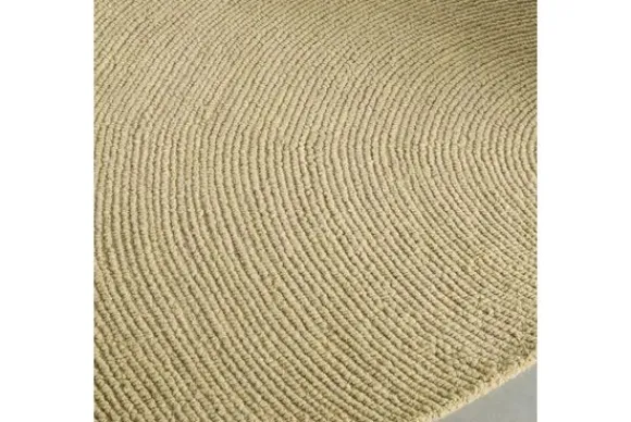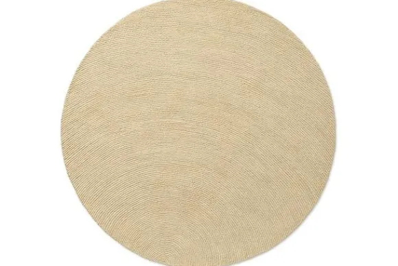 Het ronde vloerkleed is van 100% wol gemaakt en handgetuft in lussen. Het vloerkleed is ook rechthoekig en in meerdere kleuren verkrijgbaar, waaronder Ochre, Forest en Pebble.