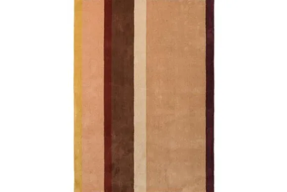 Vloerkleed Decor Linear Ruby 089803 van het merk Brink & Campman is een rechthoekig laagpolig kleed met verschillende stroken kleuren, van oker tot bordeaux rood. Dit geeft het kleed een warme uitstraling die mooi past in een modern of eclectisch interieur.