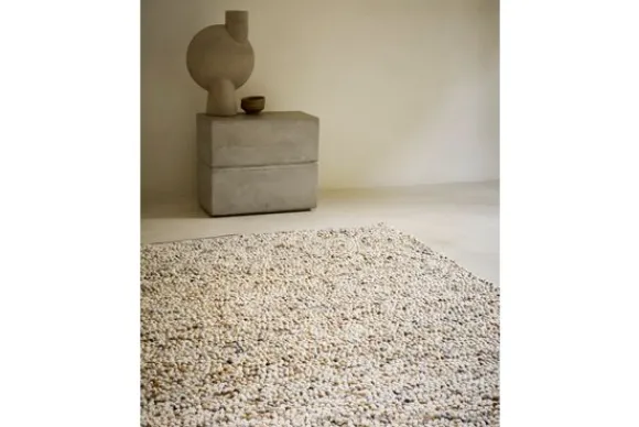 Vloerkleed Pebble Natural 129801 van het merk Brink & Campman is verkrijgbaar in verschillende afmetingen. Dit vloerkleed is gemaakt van wol en jute. Wol is een natuurlijk materiaal met veel positieve eigenschappen. Het materiaal is namelijk vuilafstotend, slijtvast, geluiddempend en isolerend. Daarnaast heeft het een luxe uitstraling en voelt het ook nog eens heerlijk warm aan. Een groot voordeel van jute is dat het makkelijk te onderhouden is.