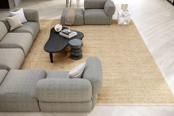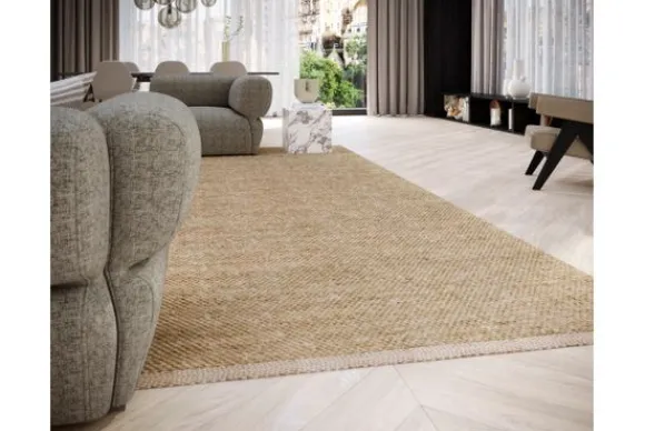 Bij dit vloerkleed is het mogelijk om bij “Kies je extra’s” voor een zwart of witte kettingdraad of een sisaldraad te kiezen. Dit is het draad die door het vloerkleed heen is gewoven. Door te kiezen voor een sisal kettingdraad ontstaat er een strakker, bijna grafisch, dessin. De structuur en ruwheid die sisal typeert combineert moeiteloos met de zachtheid van wol. Dit vloerkleed wordt standaard geleverd in de kleur 12 en met een witte kettingdraad.