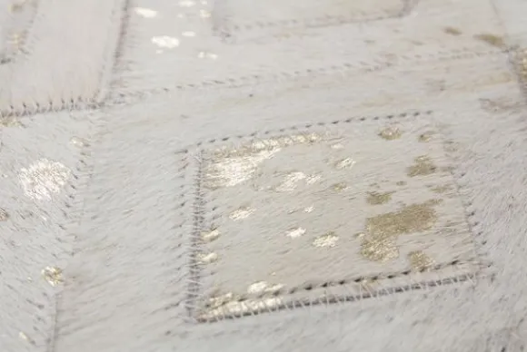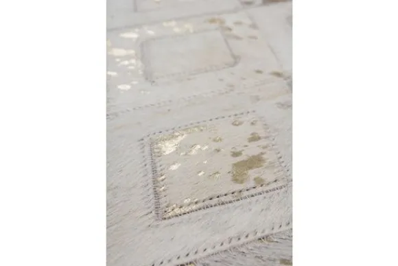 Vloerkleed Spark 110 Ivoor Goud van het merk Divendo is verkrijgbaar in verschillende afmetingen, designs en kleuren. Het prachtige lederen tapijt met goudkleurig metaalfolie rondt elke elegante inrichtingsstijl vakkundig af. Het hoogwaardige, elegante vloerkleed van 100% leer geeft een luxeus tintje aan de omgeving en zorgt voor een heel bijzondere flair. Het kleed is met de hand gemaakt, dus elk leren tapijt is uniek. Het gebruik van fijne natuurlijke materialen en hoogwaardige afwerking zorgen voor een dynamische uitstraling en maken elk tapijt uniek, omdat natuurlijke producten tot 30% in vorm, kleur en patroon kunnen variëren.