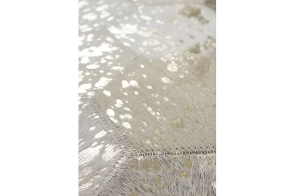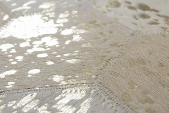 Vloerkleed Spark 210 Ivoor Goud van het merk Divendo is verkrijgbaar in verschillende afmetingen, designs en kleuren. Het prachtige lederen tapijt met goudkleurig metaalfolie rondt elke elegante inrichtingsstijl vakkundig af. Het hoogwaardige, elegante vloerkleed van 100% leer geeft een luxeus tintje aan de omgeving en zorgt voor een heel bijzondere flair. Het kleed is met de hand gemaakt, dus elk leren tapijt is uniek. Het gebruik van fijne natuurlijke materialen en hoogwaardige afwerking zorgen voor een dynamische uitstraling en maken elk tapijt uniek, omdat natuurlijke producten tot 30% in vorm, kleur en patroon kunnen variëren. Het moderne honingraatpatroon geeft het vloerkleed een bijzonder tintje.