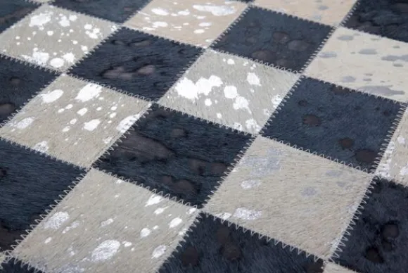 Vloerkleed Rocket 210 Zilver Grijs van het merk Divendo is verkrijgbaar in verschillende afmetingen en designs. De basis van dit 100% leren vloerkleed in patchwork-design wordt gevormd door verschillende nuances van een kleur. De bedrukte metallic folie is het bijzondere hoogtepunt van het tapijt, zet accenten en laat het kleed glanzen. Elk vloerkleed van de Rocket serie is uniek door natuurlijke variaties in maat, kleur, patroon en structuur. Deze unieke stukken worden afgerond door de foliedecoratie in zilver. Van het natuurlijke leer wordt een hoogwaardig tapijt met de hand gemaakt, dat naast zijn duurzaamheid en robuustheid ook glanst omdat het lichtecht en gemakkelijk schoon te maken is. Zacht katoen completeert de onderkant van het lederen vloerkleed en ondersteunt de warmte-isolatie en geluidsisolatie. Zelfs kamers met vloerverwarming zijn geen probleem voor dit kleed.