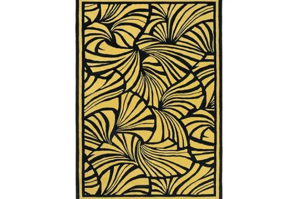 Vloerkleed Japanese Fans Gold 039305 van het merk Florence Broadhurst is gemaakt van wol. Dit vloerkleed is geel met zwart en heeft een speels patroon. Je kunt kiezen uit diverse kleuren en afmetingen.