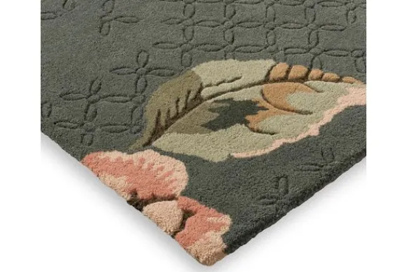 Vloerkleed Aylworth Trail Fern Green van het merk Laura Ashley heeft een subtiele bloemmotief in zachte tinten roze en groen. De rijke textuur en het patroon van dit rechthoekige vloerkleed brengen een vleug romantiek in elke ruimte.