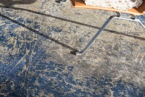 Vloerkleed Cracks Abyss Blue 8629 is onderdeel van de Mad Men collectie van het merk Louis de Poortere. In dit ontwerp komen diepe blauwtinten en zachte zandkleuren samen in een speels en doorleefd patroon. De ronde vorm versterkt de vloeiende lijnen van het design, waardoor het kleed oogt als een abstract schilderij vol diepte en beweging.