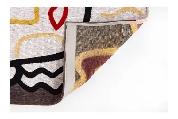 Dit vloerkleed is gemaakt van PET, een stevig en duurzaam materiaal. Het is onderhoudsvriendelijk, neemt geen vloeistoffen op en is daardoor eenvoudig schoon te houden. De onderzijde is voorzien van een antislip laag, waardoor het kleed stevig op zijn plaats blijft liggen en extra comfort biedt in dagelijks gebruik.