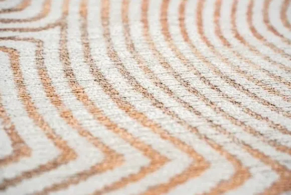 Vloerkleed Coral Indian Sand 9800 is onderdeel van de Meditation collectie van het merk Louis de Poortere. Het ronde ontwerp is geïnspireerd door een gedicht van José María de Heredia: “The sun under the sea, mysterious dawn, Enlighten the forest of Abysinnian corals…” De warme kleurnuances en speelse lijnen roepen beelden op van kabbelende stromingen en brengen een gevoel van balans en sereniteit in de ruimte.