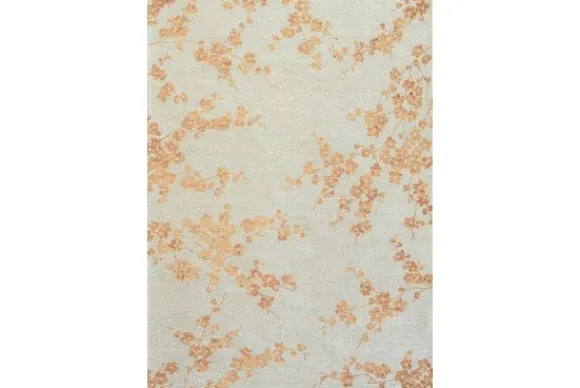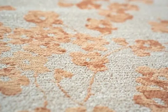 Vloerkleed Sakura Petal Dew 9834 van het merk Louis de Poortere straalt rust en verfijning uit. Het zachte dessin van bloesemtakken in warme perziktinten lijkt haast geschilderd op de lichte ondergrond. Deze compositie geeft het vloerkleed karakter dat een ruimte subtiel verrijkt zonder te overheersen.