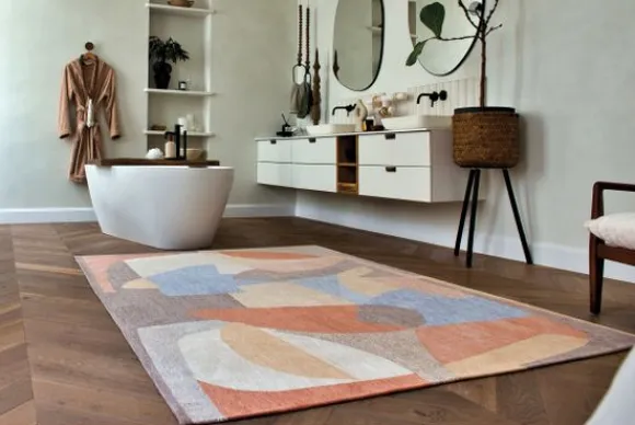 Laat je verleiden door het Shapes vloerkleed, met zijn abstracte in elkaar grijpende vormen. Om diepte en visueel belang toe te voegen, zijn materiaaleffecten in het tapijt verwerkt. Deze getextureerde effecten geven een tastbaar gevoel en creëren subtiele lichtspelletjes die de abstracte vormen benadrukken. De gebruikte kleuren zijn zorgvuldig geselecteerd om visuele overlappen te creëren. Wanneer deze kleuren samenkomen, mengen ze zich om nieuwe tinten te creëren en brengen ze een extra visuele dynamiek in het geheel.