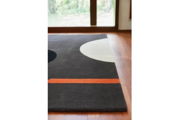 Vloerkleed Geo Flower Graphite 060605 van het merk Orla Kiely is verkrijgbaar in verschillende afmetingen. De kleuren grijs, zwart, wit en oranje maken dit tot een modern en stoer vloerkleed. De grafische vormen geven het kleed een abstracte look. Het vloerkleed is gemaakt van wol. Wol is een natuurlijk materiaal met veel positieve eigenschappen. Het is namelijk vuilafstotend, slijtvast, geluiddempend en isolerend. Ook heeft het een luxe uitstraling en voelt het heerlijk warm aan. Het vloerkleed is met de hand getuft, hierdoor ontstaat er geen restmateriaal en is het design gelijk op het tapijt gemaakt. Dit vloerkleed heeft een poolhoogte van 12 mm.
