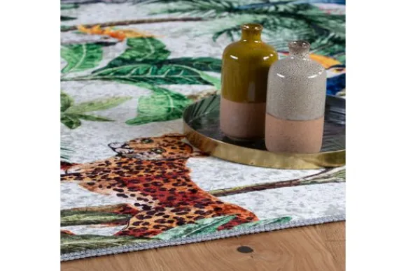 Vloerkleed Exotic 213 Multi van het merk Viviendo is verkrijgbaar in twee afmetingen. Dit vloerkleed is gemaakt van 100% polyester. Polyester vloerkleden zijn gemaakt van een synthetische stof die ervoor zorgt dat het tapijt stevig is, niet pluist en gemakkelijk te onderhouden is. Het vloerkleed is voorzien een kleurrijke, dierlijke print en heeft een poolhoogte van 5 mm.