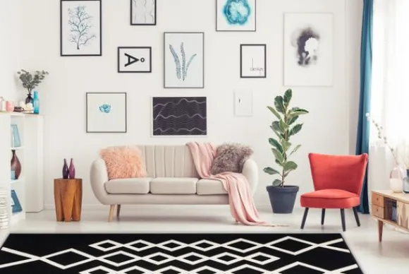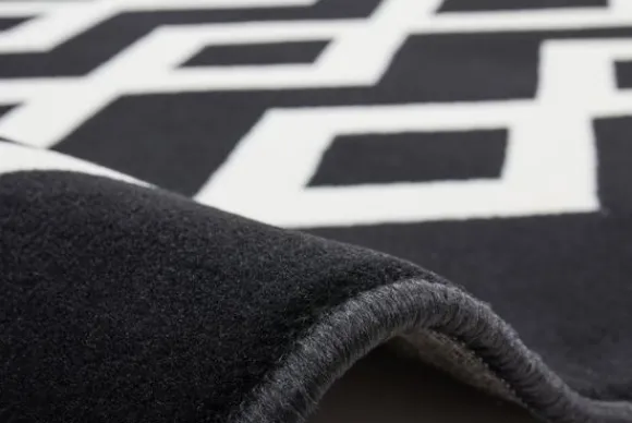 Vloerkleed Lina 425 Zwart Ivoor van het merk Divendo is verkrijgbaar in verschillende afmetingen. De lijnen en vormen worden driedimensionaal benadrukt met behulp van het speciale drop-stitch-proces, waardoor een modern, uniek ontwerp ontstaat. Het kleed kan dienen als eyecatcher in de woonkamer of als vloerkleed in de gang, maar ook als brug in andere woonruimtes zoals de slaapkamer of kantoor. Het zwart- en ivoorkleurige vloerkleed is een absolute ster. Het moderne design brengt de meubels en het vloerkleed prachtig in harmonie en laat ze samensmelten tot een modern kunstwerk.