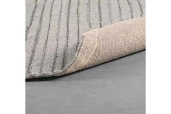 Vloerkleed Luxy heeft een rechthoekige vorm en is uitgevoerd in de kleur grijs, waarbij de bovenkant is gemaakt van het duurzame materiaal wol. Luxy heeft speelse banen als gestanste print, wat zorgt voor een moderne uitstraling. De onderzijde van het vloerkleed is gemaakt van 100% katoen, wat ervoor zorgt dat het vloerkleed goed op de vloer blijft liggen.