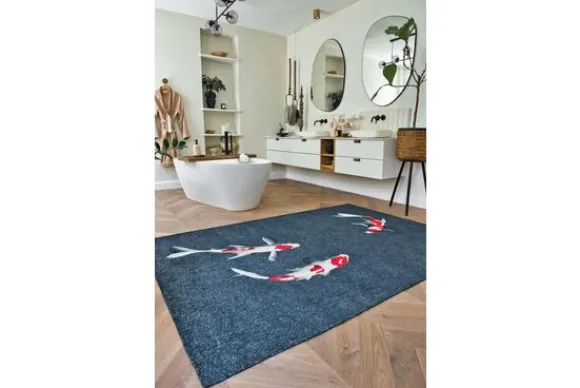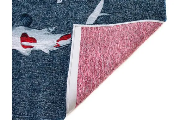 Vloerkleed Pop Japanese Pond 9390 van het merk Louis de Poortere is verkrijgbaar in vijf afmetingen en verschillende designs. Daarnaast is de Pop ook in het rond beschikbaar. Het vloerkleed heeft een uniek design van drie koikarpers op een blauwe achtergrond en is gemaakt van polyester. Polyester vloerkleden zijn gemaakt van een synthetische stof die ervoor zorgt dat het tapijt stevig is, niet pluist en gemakkelijk te onderhouden is. De onderkant van dit vloerkleed is voorzien van antislip latex.