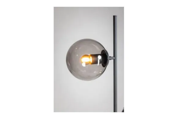 Vloerlamp Davina van het merk ETH is niet alleen mooi wanneer hij brand. Overdag is het ook zeker een plaatje om naar te kijken. Deze lamp heeft ronde glazen lampenkappen die een licht gerookte kleur hebben. Elke bol is 18x18cm.