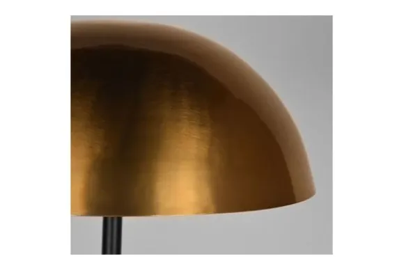Vloerlamp Globe, uitgevoerd in de kleurencombinatie antiek goud en zwart heeft een ronde, antiek gouden metalen kap die middels de fitting is verbonden aan de speelse zwart metalen driepoot. Deze combinatie van vormen zorgt voor een volumineus en luchtig uiterlijk met heel veel elegantie. Globe heeft een zwart strijkijzerkoord en een E27 fitting. Globe is tevens verkrijgbaar in geheel zwart metaal. Combineer voor een mooie eenheid vloerlamp Globe met tafellamp Globe.
