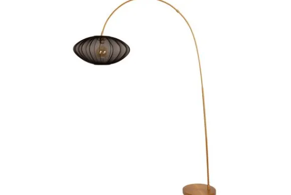 De vloerlamp bevat een lampenkap met een diameter van 55 cm gemaakt van hoogwaardige stof. Vooral de elegant gebogen basis van metaal maakt van de lamp een elegant en goed te combineren met verschillende materialen en kleuren in het interieur.