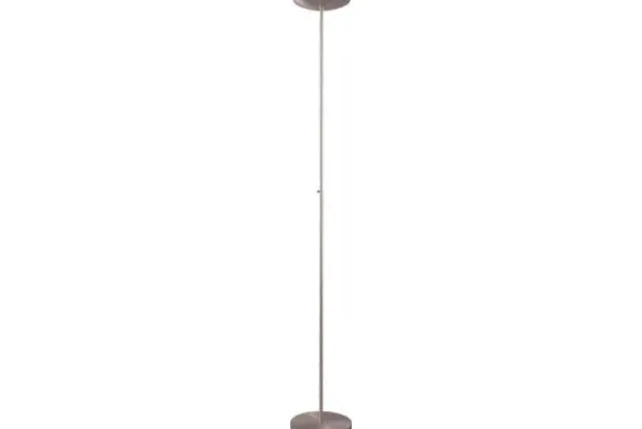 Vloerlamp Scala 1192-37-37 van het merk Masterlight is een strakke en eenvoudige lamp. De rechte vloerlamp staat op een mooie ronde, metalen zilveren vloerplaat met een strak vormgegeven zilveren, ronde lampenkap. De moderne vloerlamp is 186 centimeter hoog. In de woonkamer, leeshoek of slaapkamer. De rechte vloerlamp komt goed tot zijn recht in verschillende soorten ruimtes. Bepaal zelf de sfeer door het push-dim systeem wat bij de vloerlamp zit. Zacht licht voor de knusse momenten en wat harder licht als je heerlijk op de bank zit om een boek te lezen. Er zit een lichtbron bij deze lamp.