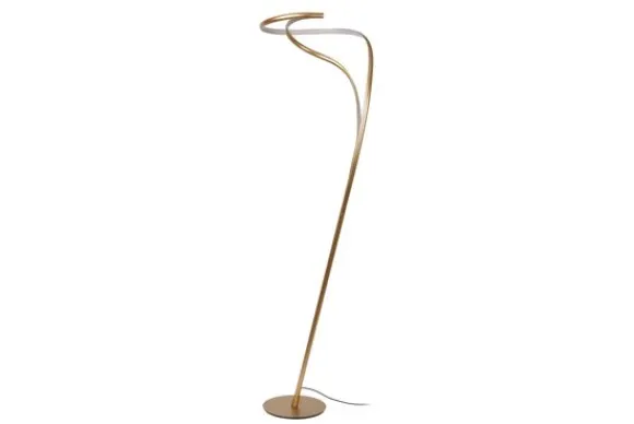 Vloerlamp Sardana van het merk Lucide is een moderne vloerlamp met een rustige en stijlvolle uitstraling. De lamp heeft een slanke vorm met een goudkleurige afwerking en past goed in een modern, hotel chic of design interieur.