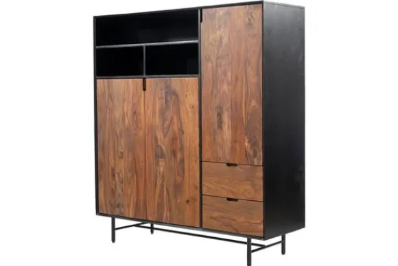 Wandkast Taviano TA 0034 van het merk Tower Living is gemaakt van mangohout. Mangohout kun je herkennen aan de vele kleurschakeringen en ongelijkheden in het oppervlakte van het hout, waardoor geen enkel meubelstuk hetzelfde is. De kleuren in mangohout kunnen variëren van lichte- tot donkere tonen. Mangohout is een duurzame houtsoort. De wandkast heeft drie deuren, twee lades en drie open vakken. De kast is perfect om decoraties of andere spullen in op te bergen.