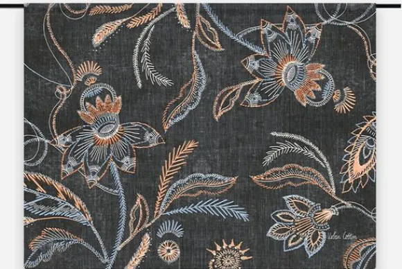 Wandkleed Black Denim van het merk Urban Cotton is direct uit voorraad leverbaar. Het betreft een volledig nieuw product inclusief garantie. Het wandkleed heeft blauwe en koraalkleurige bloemen die zorgen voor een prachtig contrast. Het vloerkleed is gemaakt van 100% organisch katoen.