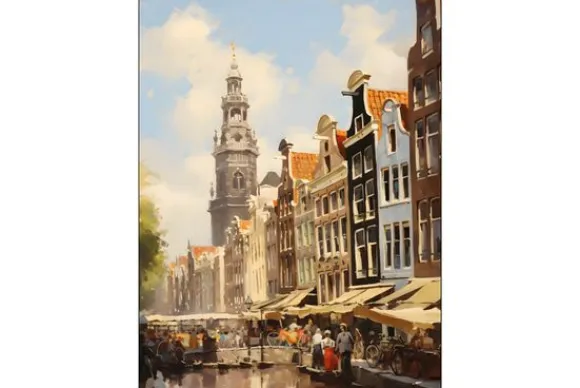 Wandkleed Amsterdam is verkrijgbaar in verschillende afmetingen. Daarnaast is de afbeelding ook verkrijgbaar als glasschilderij en art print.