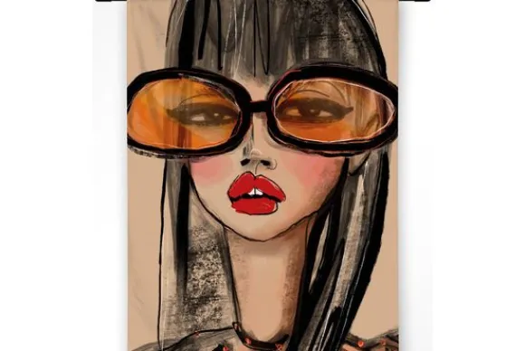 Wandkleed Sunny Orange van het merk Urban Cotton is een expressief en modieus portret met een uitgesproken, hedendaagse flair. De warme en krachtige kleuren – met aardetinten, oranje accenten en diepe zwarte lijnen – geven de afbeelding een luxueuze, bijna retro-chique vibe.